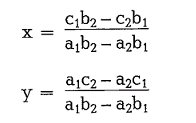First the values for a1, b1, c1, as well as for a2, bz, and c2, must be calculated.