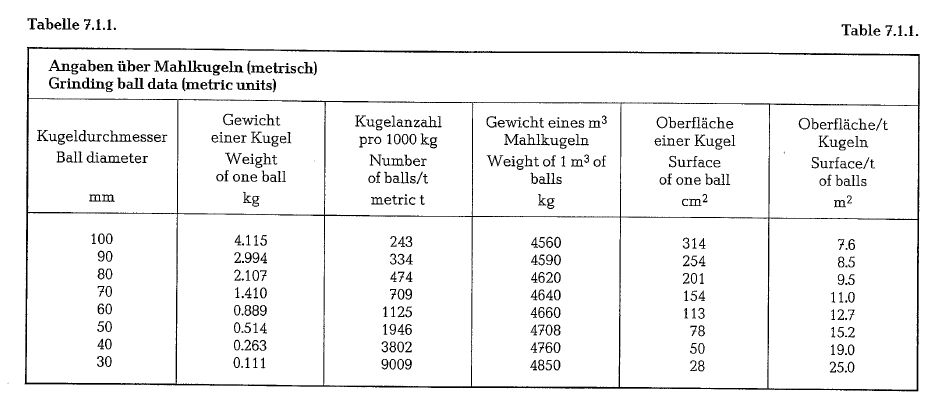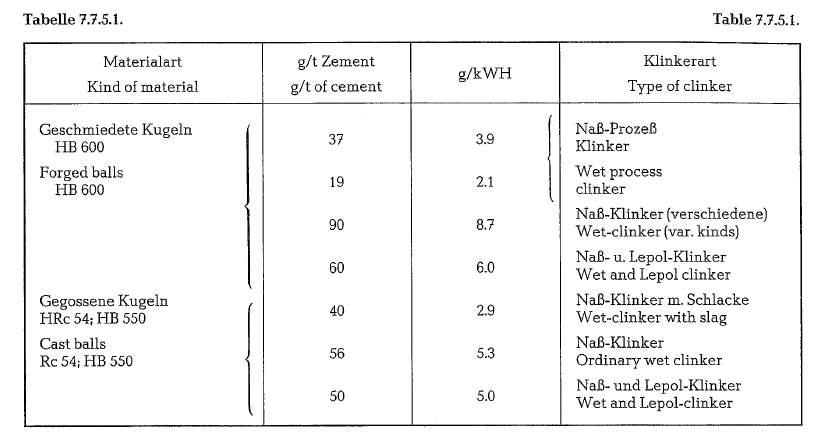 Wear rates of grinding media and mill liners of the Soviet cement industry (see table 7.7.7.1.).
