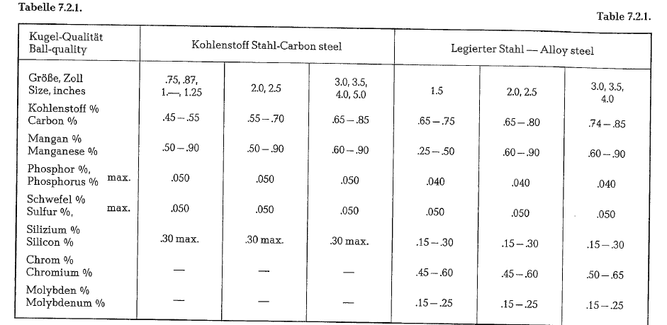 Chemical composition of test grinding balls listed in table 7.5.1. (see table 7.5.2.).