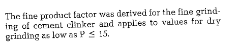 Fine product factor (to Bond’s equation); should the product size, P, be smaller than 70 microns, then the work input is multiplied by the following empirical adjustment factor A1, which equals
