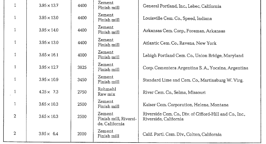 Survey of characteristic grinding plants erected in America (closed circuit grinding); see table 11.4.1.