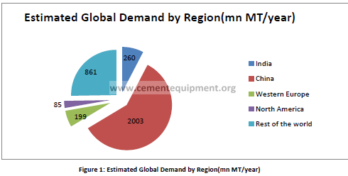 World production of cement was 2.6 billion tons/year (FY2011). The world production of cement is dominated by China (1,400 mn MT), followed by India (260 mn MT), United States, Japan and Russia. China and India, together account for more than 50% of the total cement produced and consumed in the world. Developed markets including the US, Western Europe and Japan are mature and currently facing declining demand due to the global economic crisis.