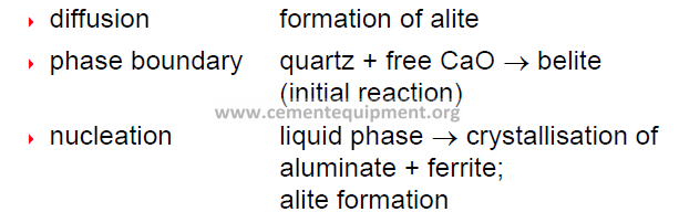 -It is evident that the difference in mineralogy and actual particle size of the individual crystals influence both the mechanism and rate of reaction, especially at start of the clinker formation