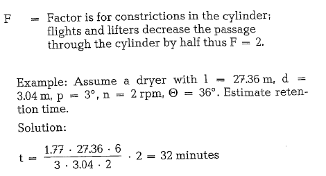 The U.S. Bureau of Mines formula [48] for passage of particles through rotary cylindrical kilns is: