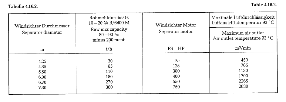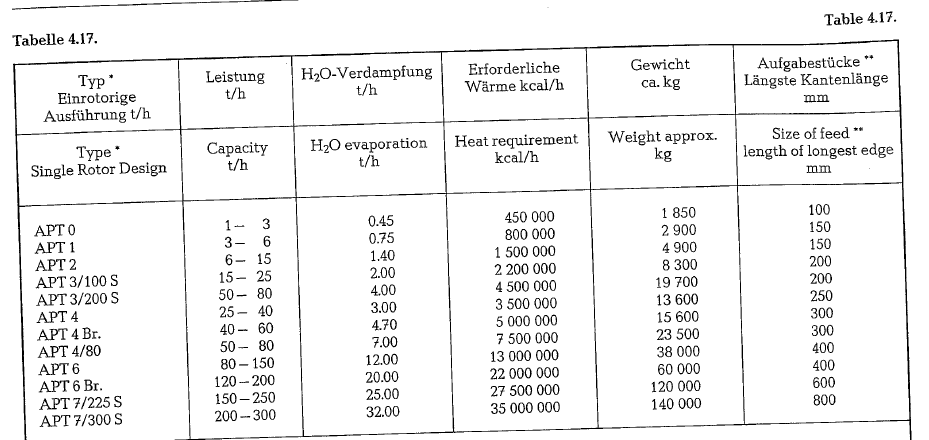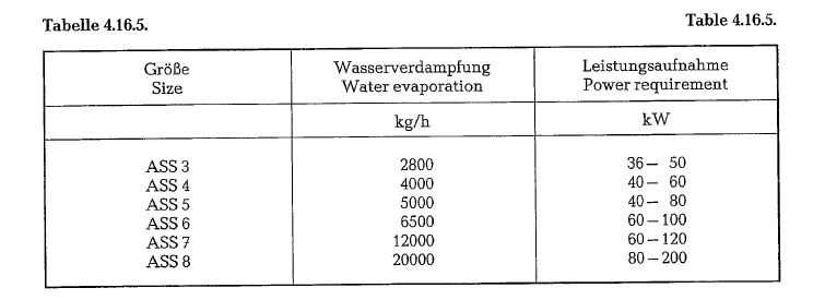 Table 4.16.5. contains sizes of rapid dryers (manufac turer: Hazemag Dr. E. Andreas KG, Munster, West falen, Germany).