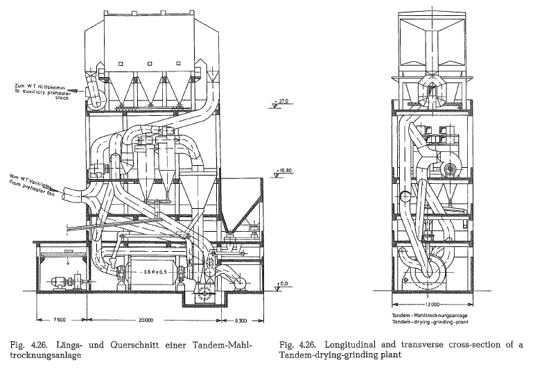 Fig. 4.26. shows longitudinal and transverse cross-sec tions of a Tandem drying-grinding plant (Fig. 4.17.,