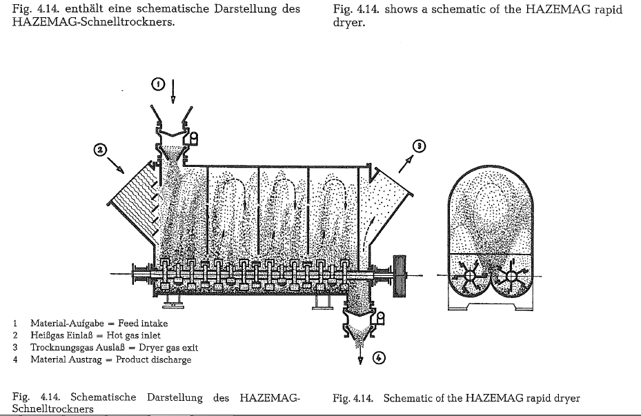 If should be emphasized that drying occurs during comminution, therefore the heat exchange is expe dited. On the other hand, such is not always the case when drying in the drum dryer since capillary mois ture sometimes remains in larger particles.