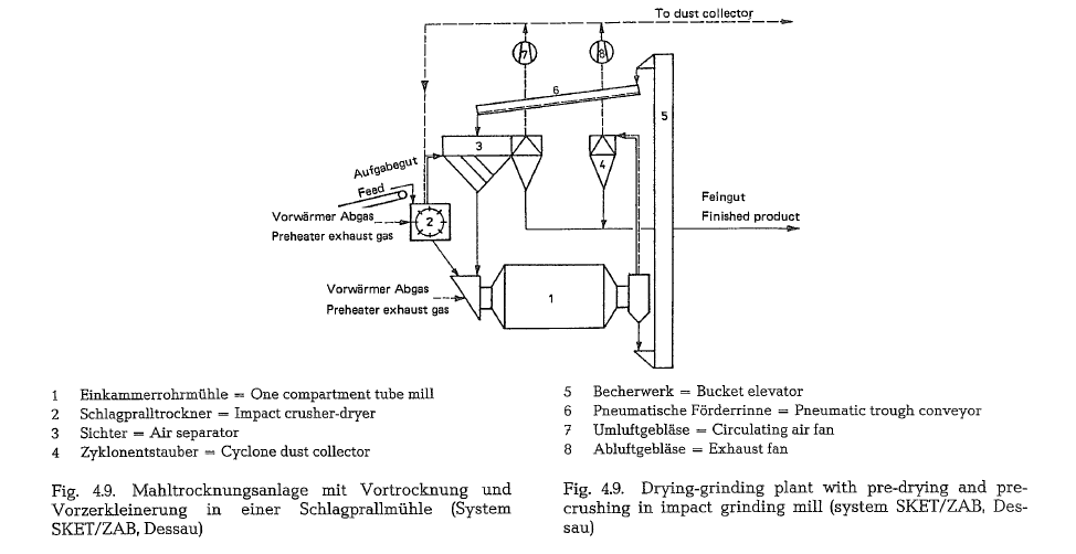 Fig. 4.9. shows a grinding system with pre-drying and pre-crushing of the SKET/ZAB, Dessau.