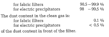 Cyclones are frequently employed as preliminary dust collectors. Main dust collectors are either fabric filters or electric precipitators. The dust collection rate is: