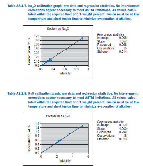 Fused beads eliminate those problems but may create others, which can also lead to inaccurate results. The fusion, completed at high temperature, may evaporate halogens, sulfur, alkalies, and other volatile elements. Because of this, some analysts select classical wet methods or pressed powders. Showing the linearity of calibration graphs and low standard error of estimates of these elements in cement using fusion and XRF analysis under proper time, temperature, and analytical conditions will usually convince even the most skeptical “wet” bench chemist.