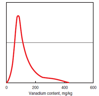 • The mass content of sulfur in #6 fuel oil may reach 5%, but usually ranges between 2% and 4% as shown in Figure 2.5.5, a histogram showing sulfur content in oils used worldwide.