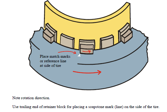 must be removed. Tool must be indexed for surface grinding parallel to shaft CL and true axis of tire