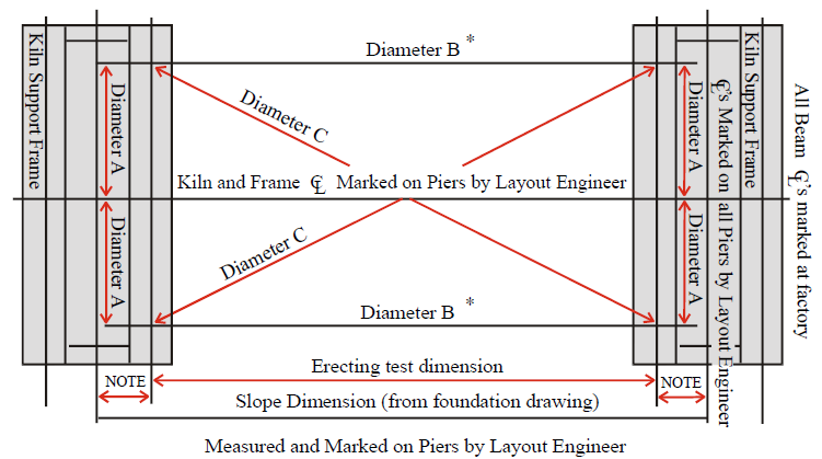Refer to foundation drawing and roller assembly drawings for elevations, frame dimensions and slope of the kiln.