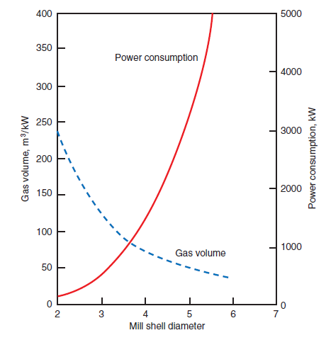 It is generally understood that size reduction by crushing consumes less power than comminution by grinding, at least within the boundary of fine crushing as defined earlier.
