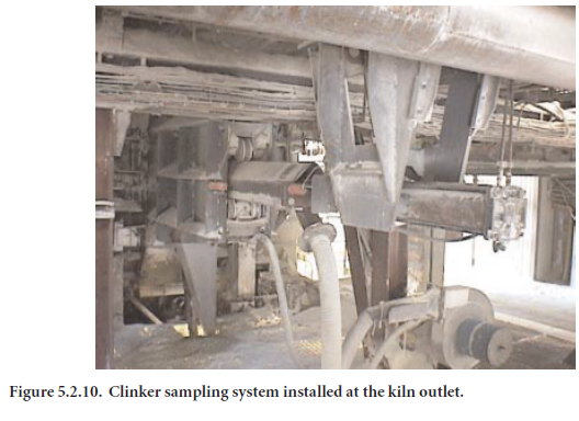 Sampling under the grate plates. This sampling system is installed in the second or third chamber of the grate cooler depending on the clinker temperature – maximum allowable tempera-ture is generally 500°C. A schematic of this system is shown in Figure 5.2.11, whereas an installed sampler at a cement plant is shown in Figure 5.2.12.