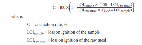 The kiln/precalciner system is normally designed for at least 85% calcination, as defined by the following equation:
