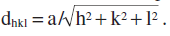 For XRD it is often necessary to calculate the distance or spacing between parallel planes. For a cubic system, this spacing is given by