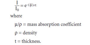 When X-rays pass through a material, some are absorbed and the intensity is thereby reduced. The decrease in intensity is given by: