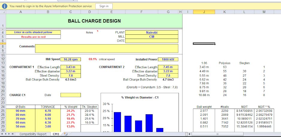 19- BALL CHARGE DESIGN calculation Excel sheet