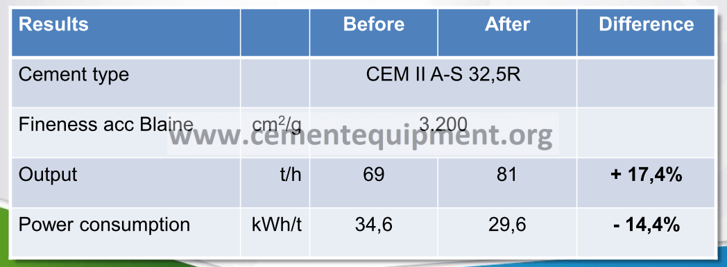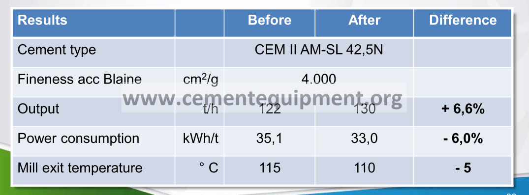 Output may increase by 5 – 10% for normal OPC, or more for finer cement.