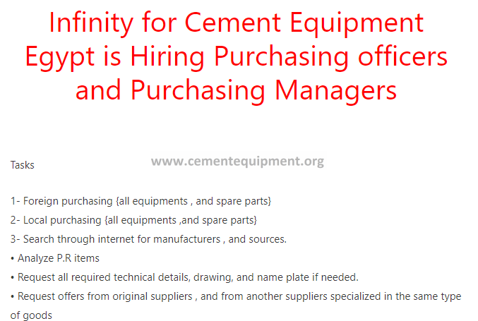 Infinity for Cement Equipment Egypt is Hiring Purchasing officers and Purchasing Managers