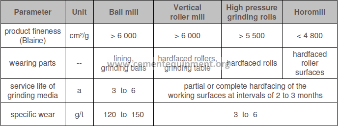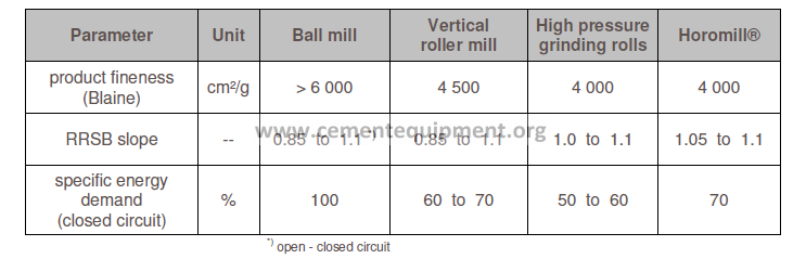 • Maximum achievable fineness 4 000 Blaine for OPC and