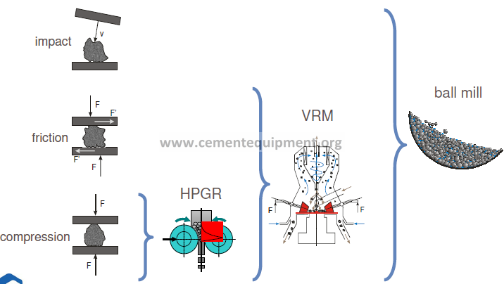 Grinding the same clinker in a ball mill, a VRM and a HPGR