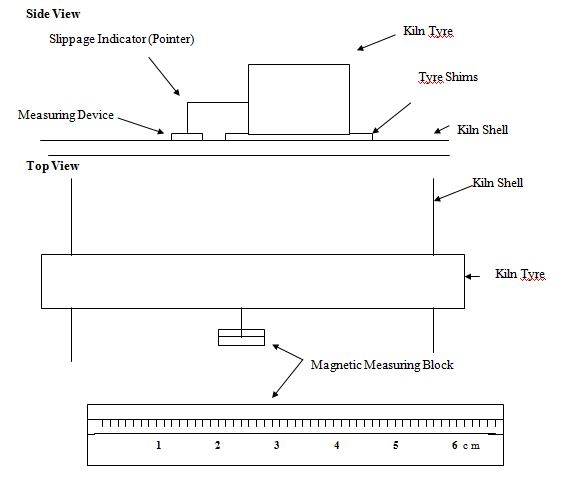 - If tyre slippage is in excess of 25mm plant personnel should investigate the shimming of the tyre. Excess slippage of the tyre can cause problems with kiln ovality which may result in shell, refractory and nose ring damage.