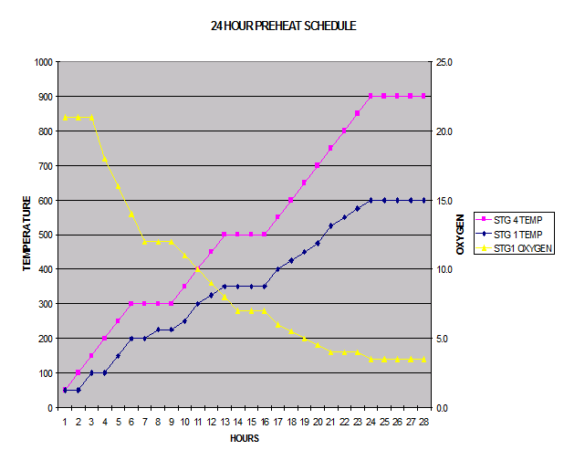 The following is a guideling for preheating Kiln refractory brick linings after a major shutdown and a short turnaround.