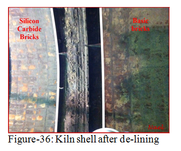1-It seems to be more successful to apply different type of gas-tight coatings or paints on the inner kiln shell to lessen the chloride attack. The inner kiln shell should be coated with the available anti corrosive paint (figure-35) immediately after de-lining. This will also help in preventing the absorption of atmospheric moisture by hygroscopic compounds such as KCl.