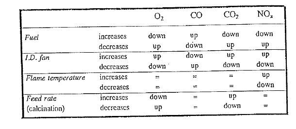 As a general rule, kiln exit-gas components are affected as follows, assuming all other variables remain constant.