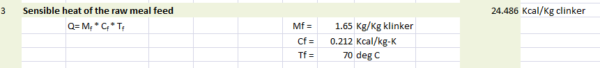 Sensible heat of the raw meal feed