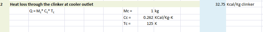 TOTAL OUTPUT = 876.103434 Kcal/Kg clinker