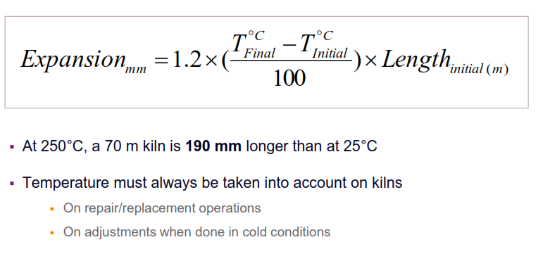 - Example of a 3-pier 4.6 m diameter kiln with pre-heater: Root clearance increases about 6 mm