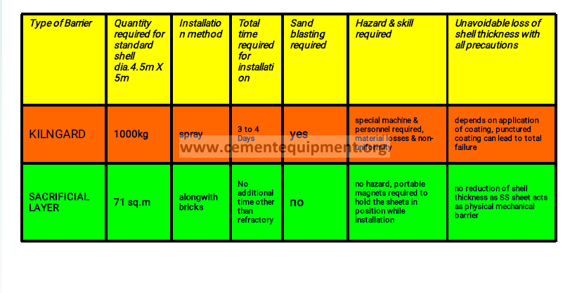 – Sacrifice layers are used successfully since 2001 in many Mexican cement rotary kilns
