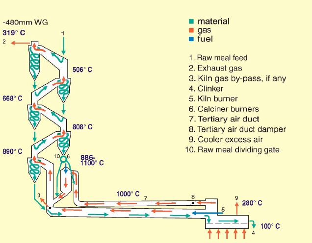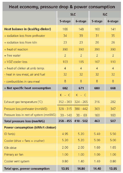 of reaction, heat is lost with the excess air from the cooler, residual heat in clinker, radiation