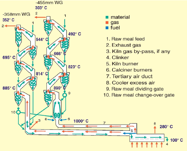 • Independent and accurate draft control for kiln and calciner strings by adjusting