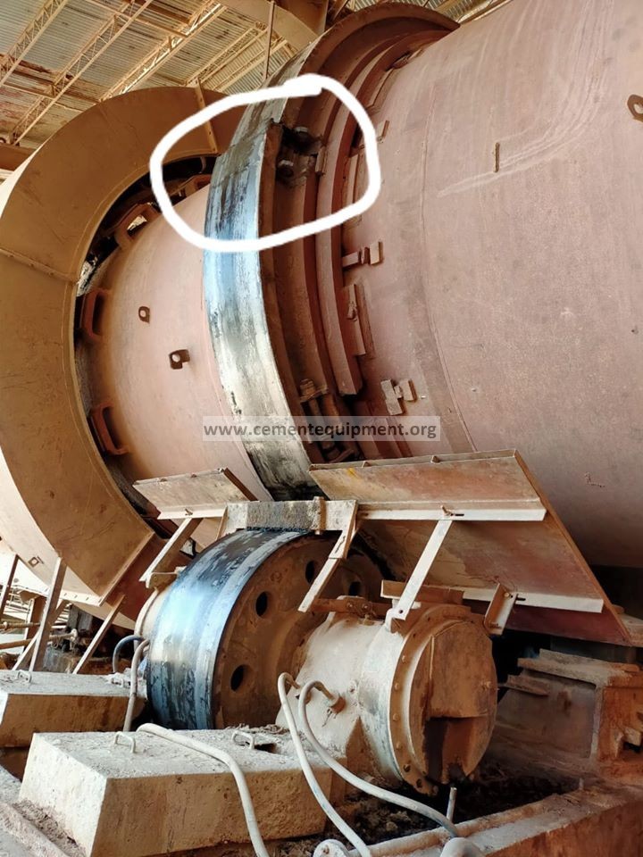 Since there is a difference between the bore diameter of the tyre and the diameter of the surface it runs on (the tyre to shell ‘gap’), a revolution for the tyre takes proportionately longer than it does for the shell. This is usually relatively small but measurable and is seen as a slow migration of the tyre around the shell. This differential motion is commonly referred to as ‘creep’. Excessive gap is as much of a problem as no gap. The tyre not only facilitates the rotary motion of the kiln, but is also responsible for maintaining its roundness and consequently the mechanical integrity of refractory. The shell at the points of support would collapse were it not for the girdling effect of the tyre. The shell can be thought of as a bag of water filling the confines of its supporting tyre. The difference in diameters therefore manifests itself near the top and is not distributed as cotangent circles. In other words when the gap becomes large, there is a flattening effect at the top. This continuous change of curvature during rotation, analogous to the flat spot of a car tyre where it contacts the road, can aggravate the mechanical integrity of the refractory to the point of collapse. Good kiln operation therefore requires that the correct tyre to shell fit or gap of which creep is the normal indicator, must be maintained.