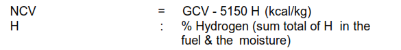 Net calorific value (NCV) of a fuel is the heat evolved in its complete combustion under constant pressure at a temperature of 25 C when the water in the system after combustion is taken as vapour.