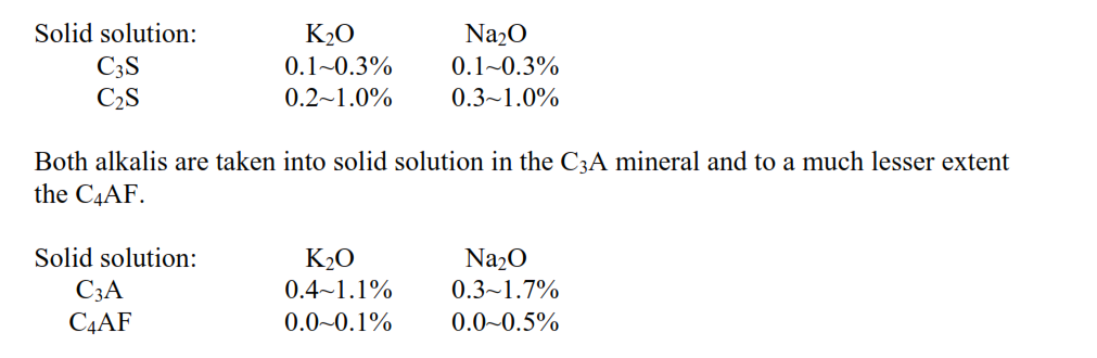 Typical ranges of solid solution of minor components in the clinker minerals are available in the literature: