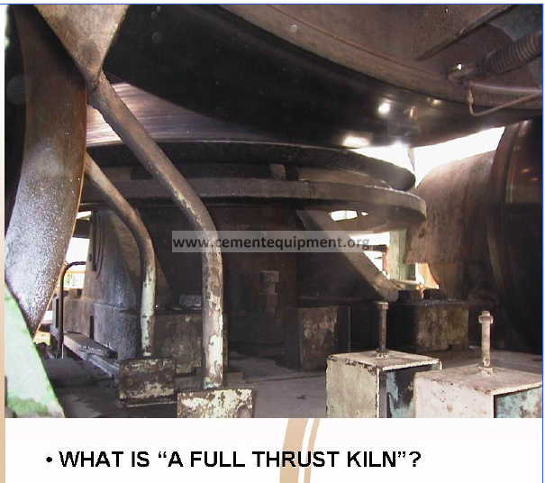 A “full thrust kiln” is simply one fitted with static thrust rollers that are large enough to fully support the kiln with the carrying rollers neutral. Sometimes with larger and longer kilns there are thrust roller assemblies on two or even more piers. There are kilns that have been built with as many as twelve (12) sets of support rollers.
