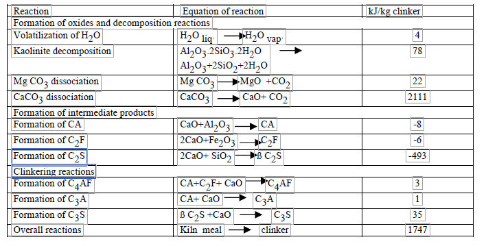 Table (1) Reactions of Raw Materials and Reactions Enthalpies in Cement Clinker