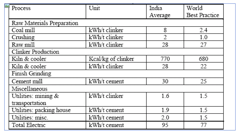 Table (2) Average and Best Practice Energy Consumption Values for Cement Plant by Process