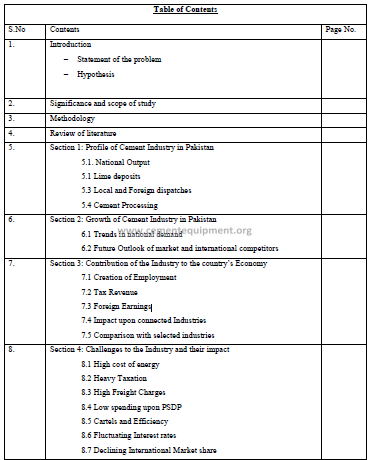 The purpose of research will be to analyze the potential problems concerning the cement sector