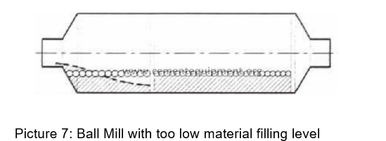 Ball mills for cement grinding usually operate with a filling  degree  between  25 and 35 %. The filling degree is defined as the volume of the grinding media    (balls) as a percentage of the total mill volume. Since mill speed, liner shape and mill diameter are usually unchangeable parameters, the only adjustment in a mill can be made with filling level and ball size distribution.Picture 3 shows the movement of balls as a function of filling degree and % critical speed.